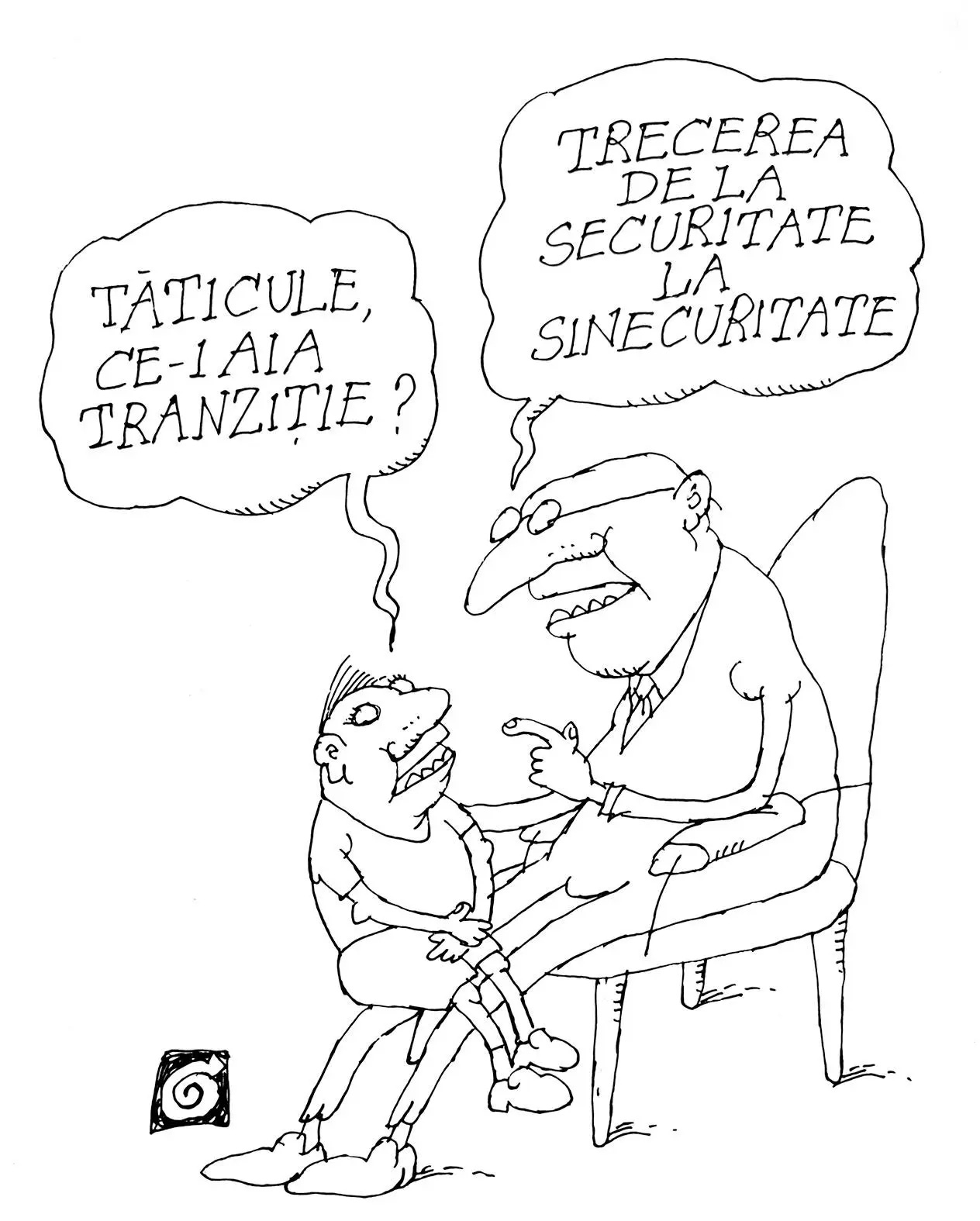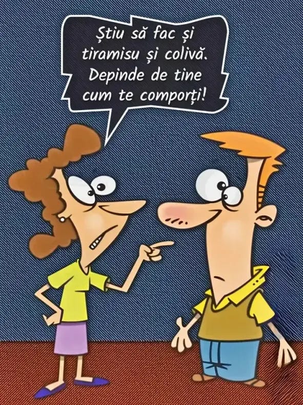 – Nu-i nevoie, mă ficior, muierea me îi tăt timpul acasă!