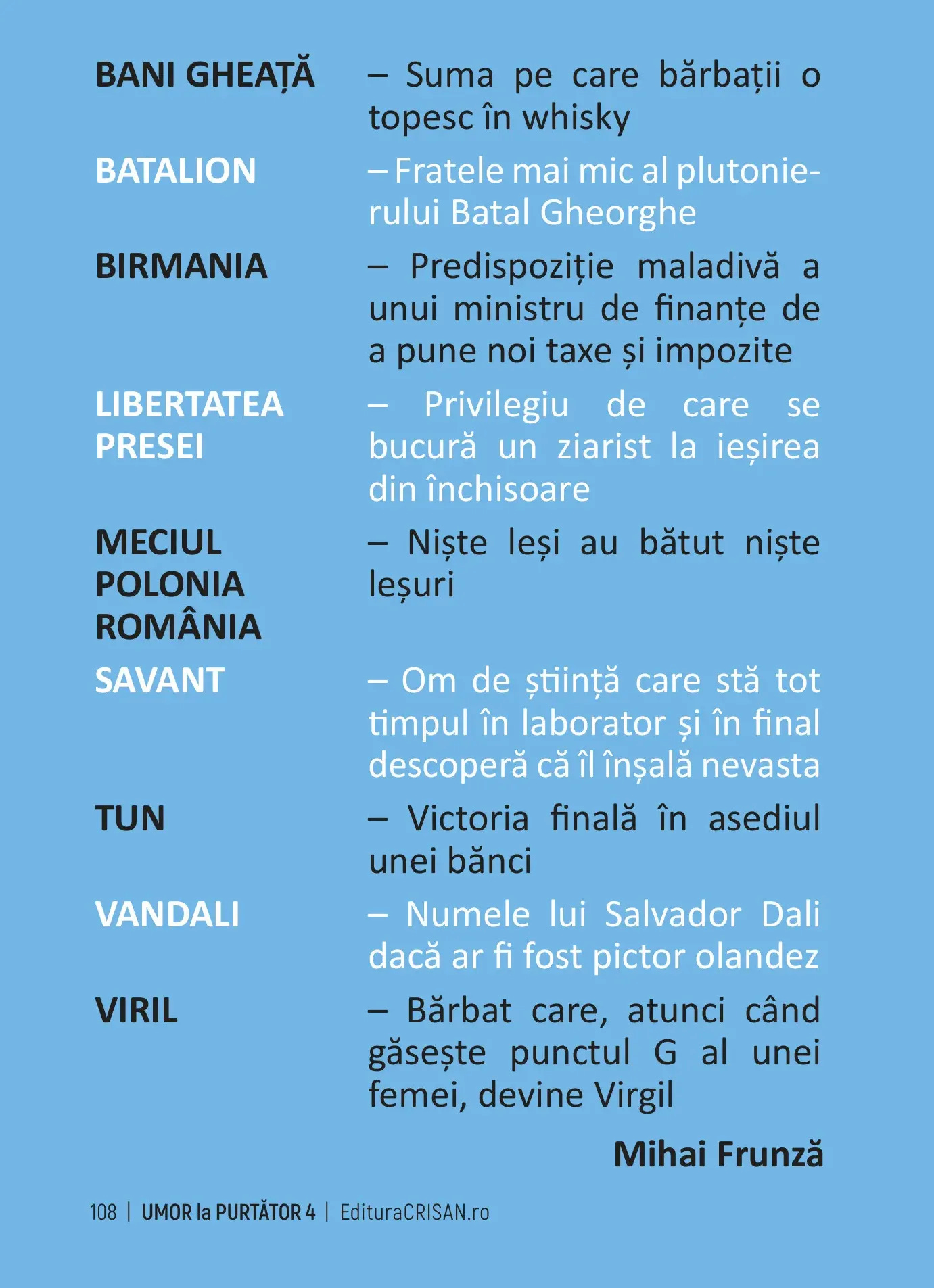 Cu acordul autorului, publicăm extrase din această uriașă antologie de bancuri. Pentru acest număr am ales câteva pagini din volumul 18.